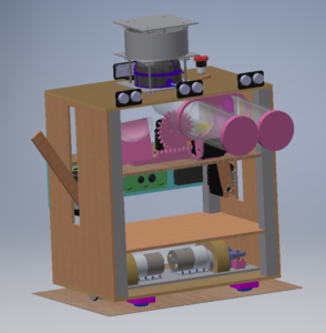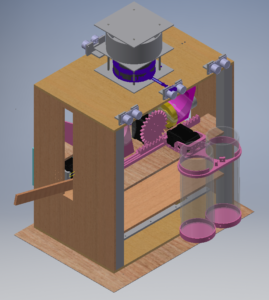 Le robot ramasse l’eau depuis les châteaux d’eau à l’aide de ses deux tubes (1 château d’eau à la fois. Ces tubes ont alors un axe de translation et deux de rotation. Ce qui permet de manipuler les balles à volonté et de les diriger vers le lanceur.