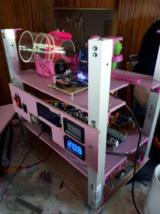 La coupe approche et on est bientôt prêts ! Le robot peut envoyer des balles de manière très élégante grace à notre système de crémaillère et au lanceur fixé sur le dessus par un élastique.