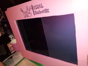 Nous avons ensuite testé notre beau tableau domotique ! Malheureusement il n’a pas survécu au voyage et subit quelques problèmes d’affichage sur l’écran… Une nouvelle nappe est en train d’être soudée afin de corriger le problème. On écrit également le code côté IA qui permettra au robot d’envoyer son score et le temps chrono restant via Bluetooth.