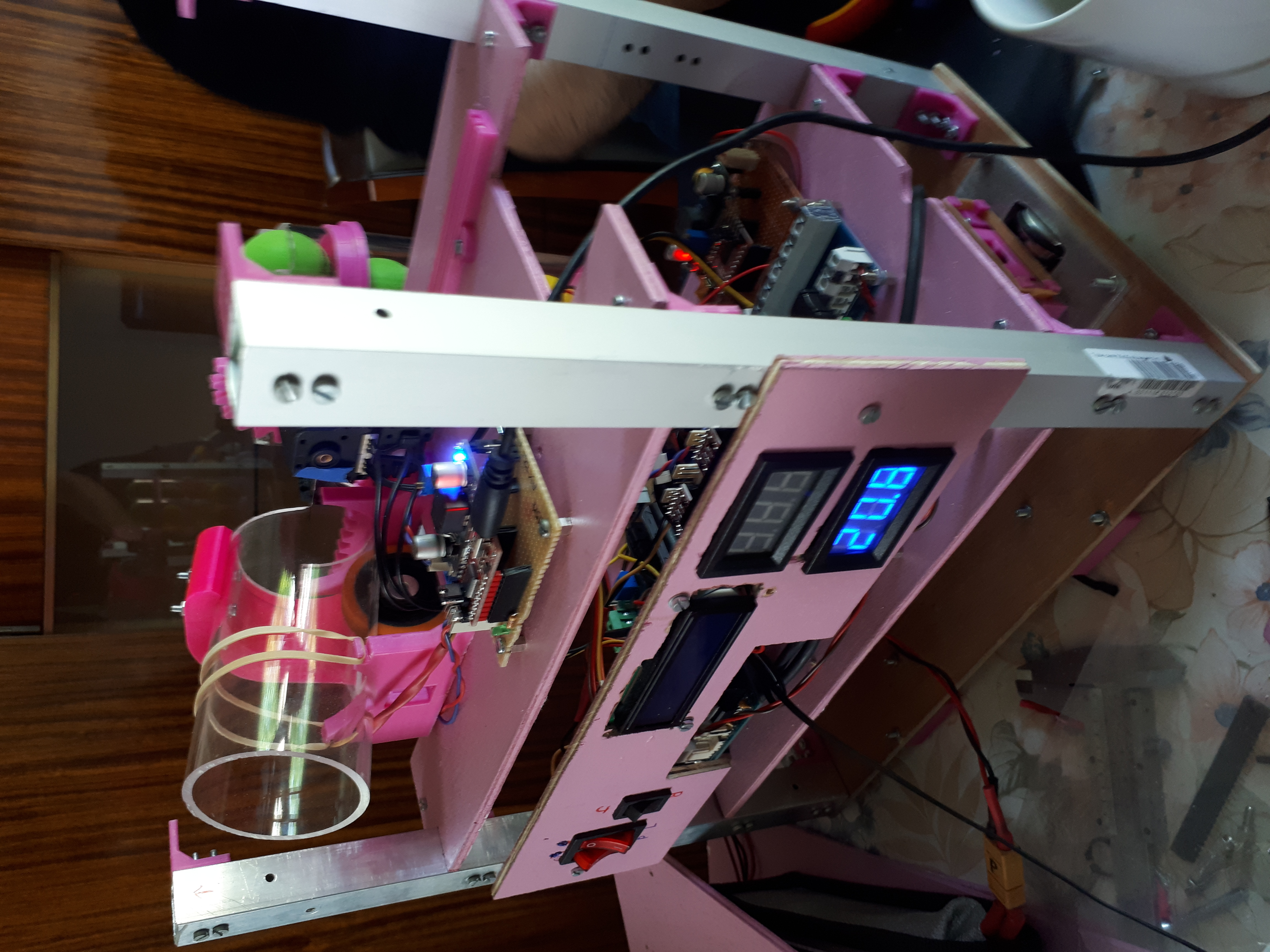 La coupe approche et on est bientôt prêts ! Le robot peut envoyer des balles de manière très élégante grace à notre système de crémaillère et au lanceur fixé sur le dessus par un élastique.