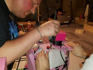 Ensuite nous avons procédé à quelques ajustements de dernière minute sur le toit du robot afin de pouvoir passer les tubes par dessous.